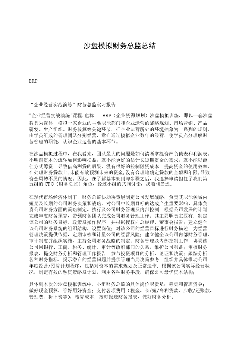 ERP沙盘模拟财务总监总结 900字