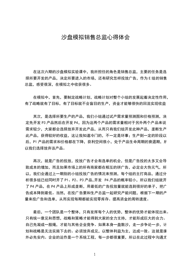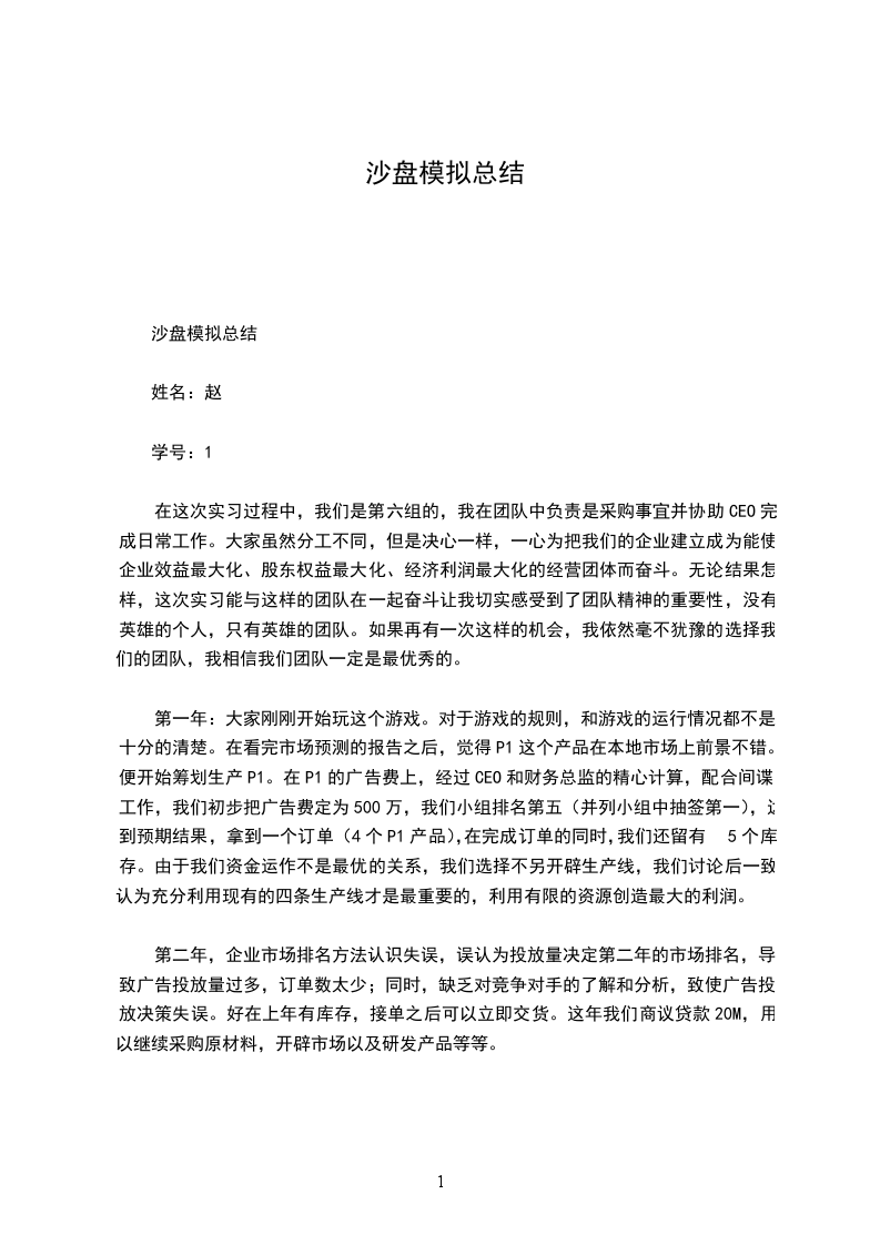 首先谈谈我们小组七年经营内的表现,起初几年,因为没有现金上的压力,决定同时进行crystal产品研发和ruby产品研发,并全线开拓国内、区域、亚洲以及国际市场。但由于对市场订单的不了解,没有获得市场领导者的地位,甚至出现了积压库存的情况;此外,我们没有及时跟新生产线,决策都过于保守和不均衡,没有全面统筹,所以,前几年我们不仅没有盈利,还形成了很大的亏损。甚至在第四年出售了产房以获取现金流,保证经营的持续进行。虽然按时交货,但是成本和费用的提高使得我们的盈利亏损更多。从第五年开始,根据老师的指导,我们清晰对比研究决定要扭转当前的局面,决定在对本公司的内部生产、财务和营销等主要部分详细的了解之后再做出决策。通过对市场的详细研究发现ruby产品在以后的市场上有很大的盈利空间,我们决定将主打产品改为ruby产品,通过经营我们公司终于将负盈利额变为正,在最后一年,通过广告的竞标拿到扭转乾坤的订单数,通过生产和销售使得公司今年的债务得以还清并还有剩余,以此结束了七年的模拟经营实战。