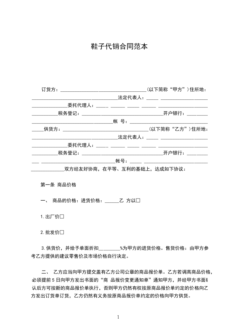 九、 合同(总货款)金额:(大写)______________元整(¥ ),______________%订金为(大写)_____________________元整(¥______________)。