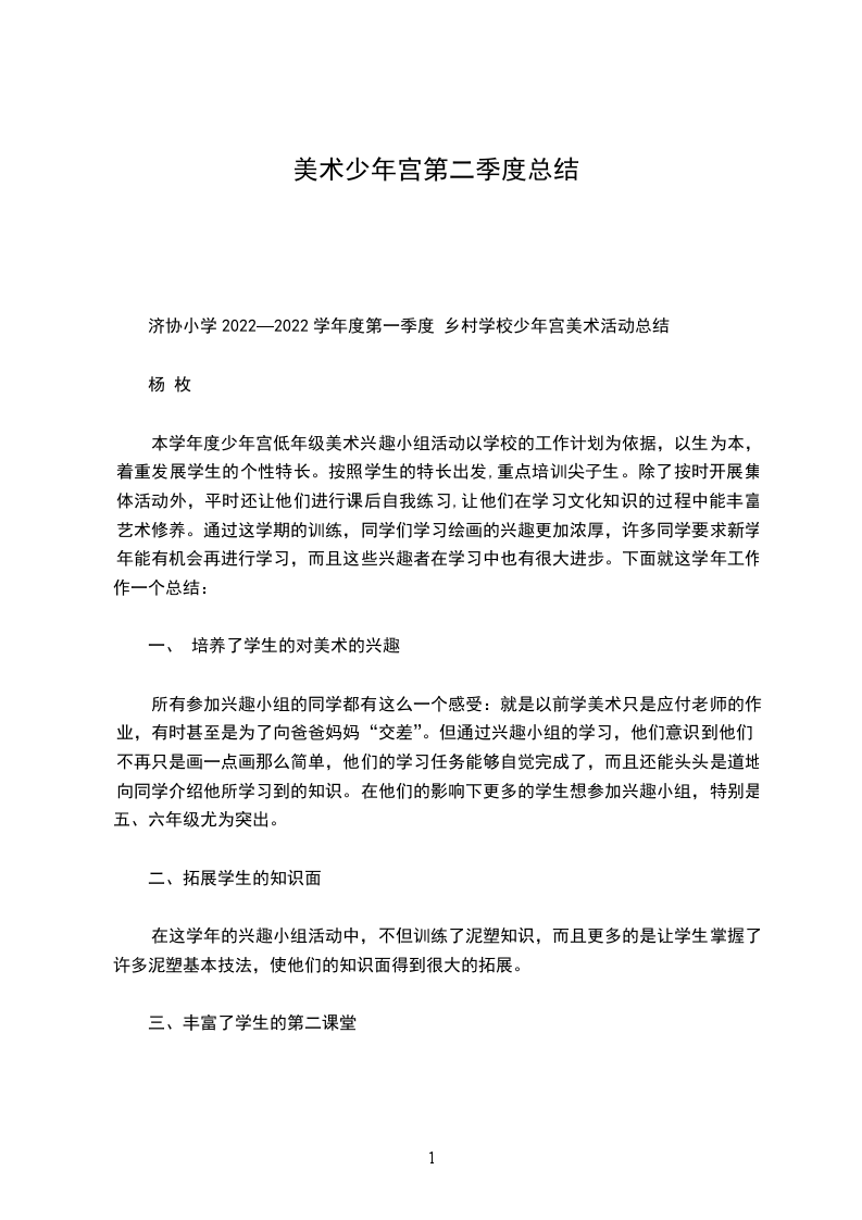 美术少年宫第一季度总结 600字