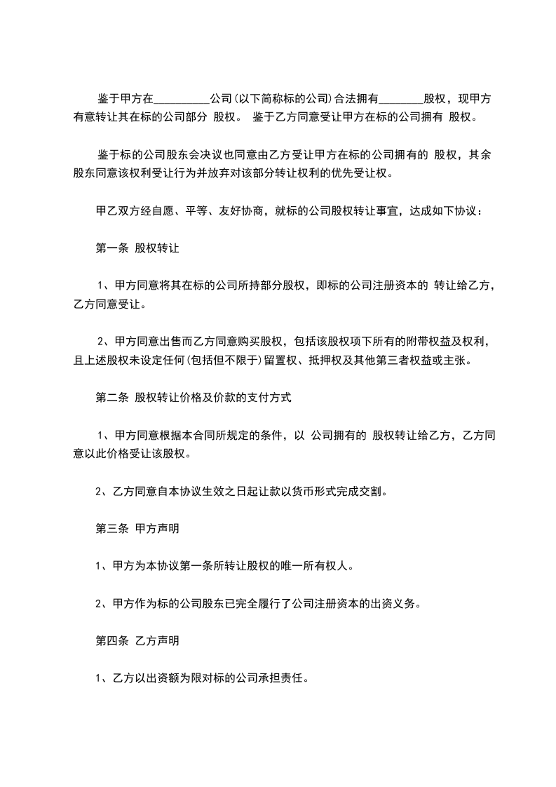 第一条 股权转让