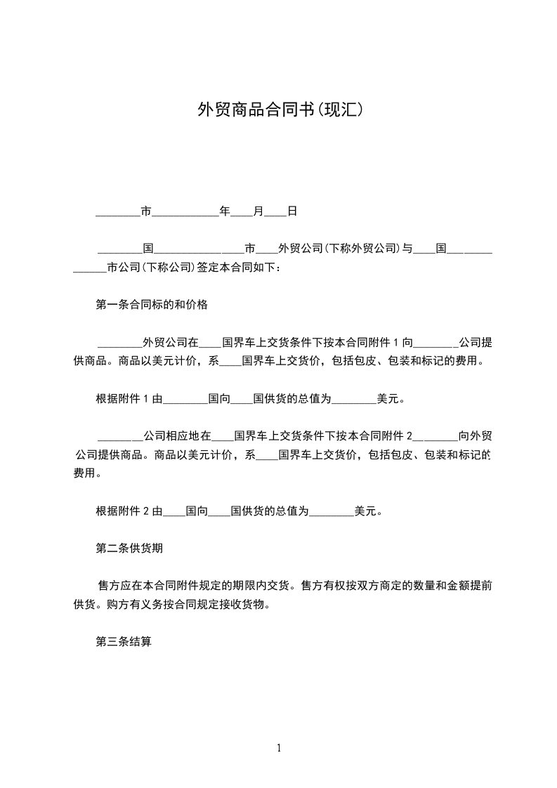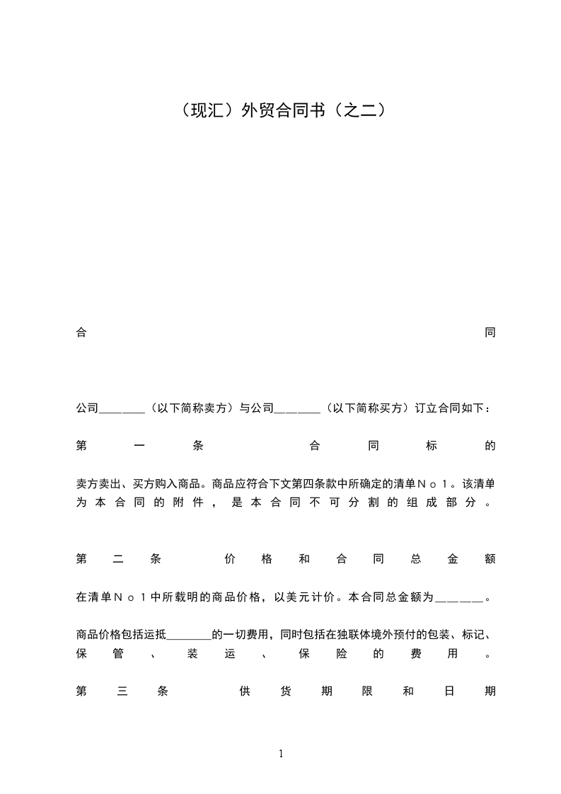 卖方卖出、买方购入商品。商品应符合下文第四条款中所确定的清单No1。该清单为本合同的附件,是本合同不可分割的组成部分。