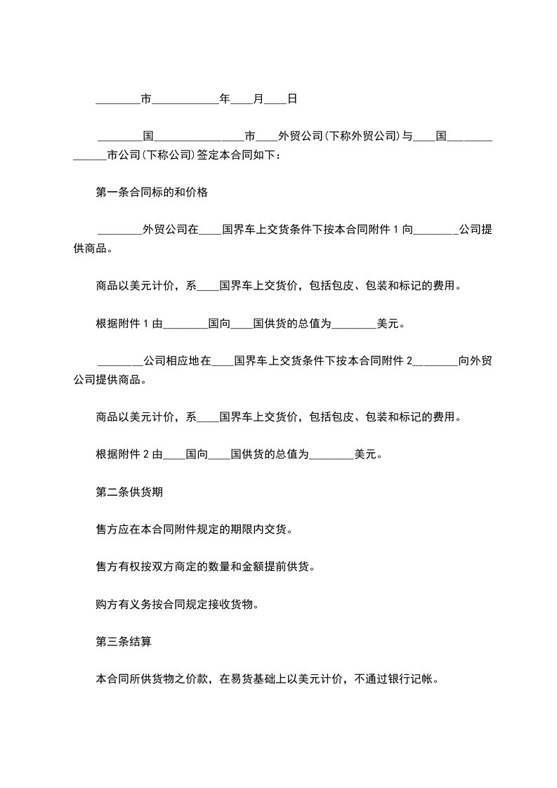 公司____(以下简称卖方)与公司____(以下简称买方)订立合同如下: