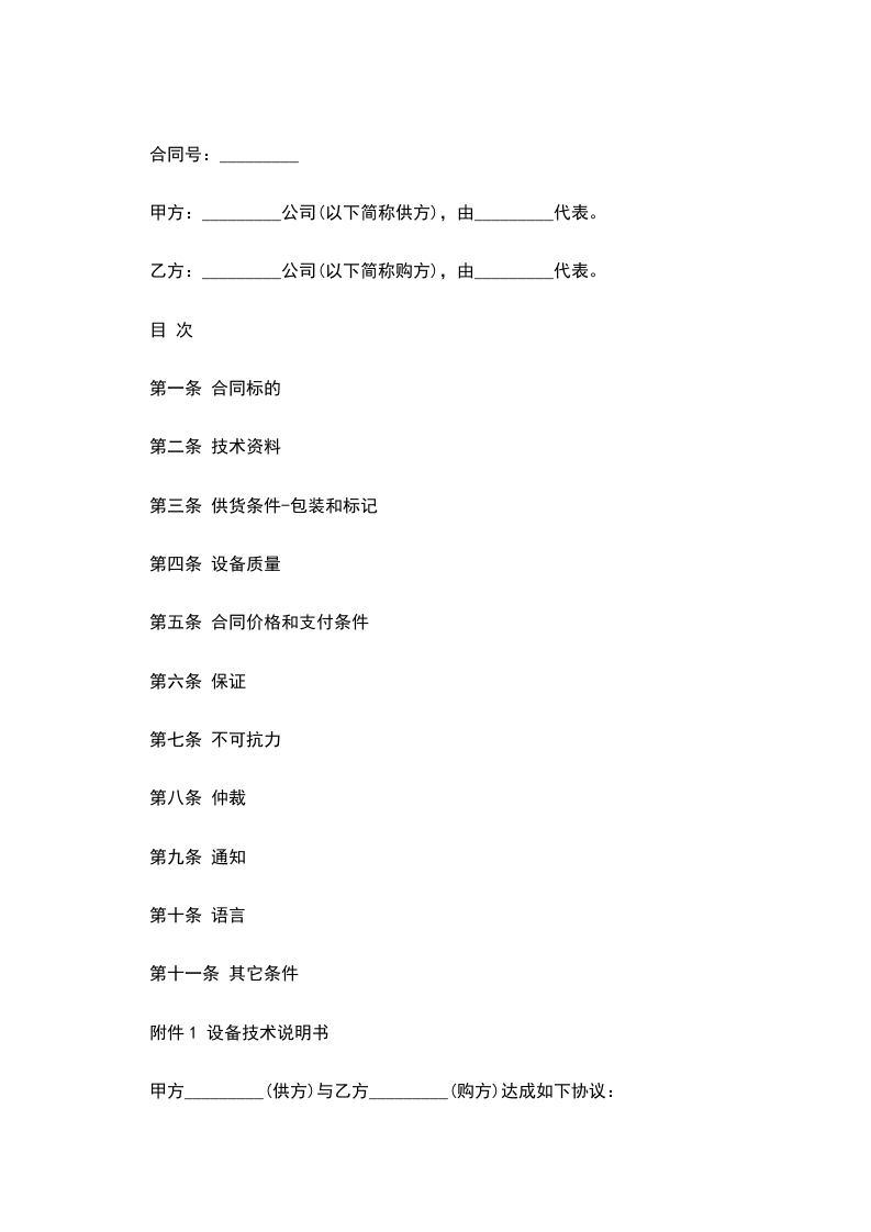 第一条 合同标的