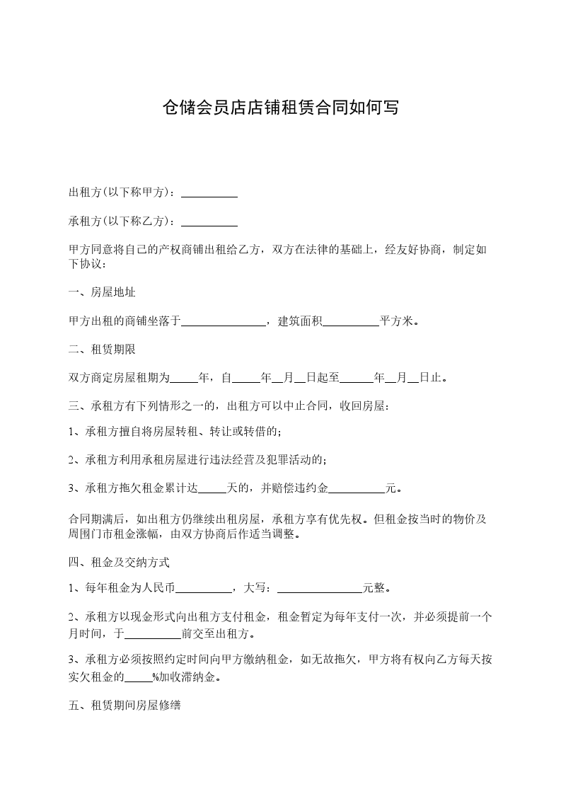 甲方出租的商铺坐落于_______________,建筑面积__________平方米。