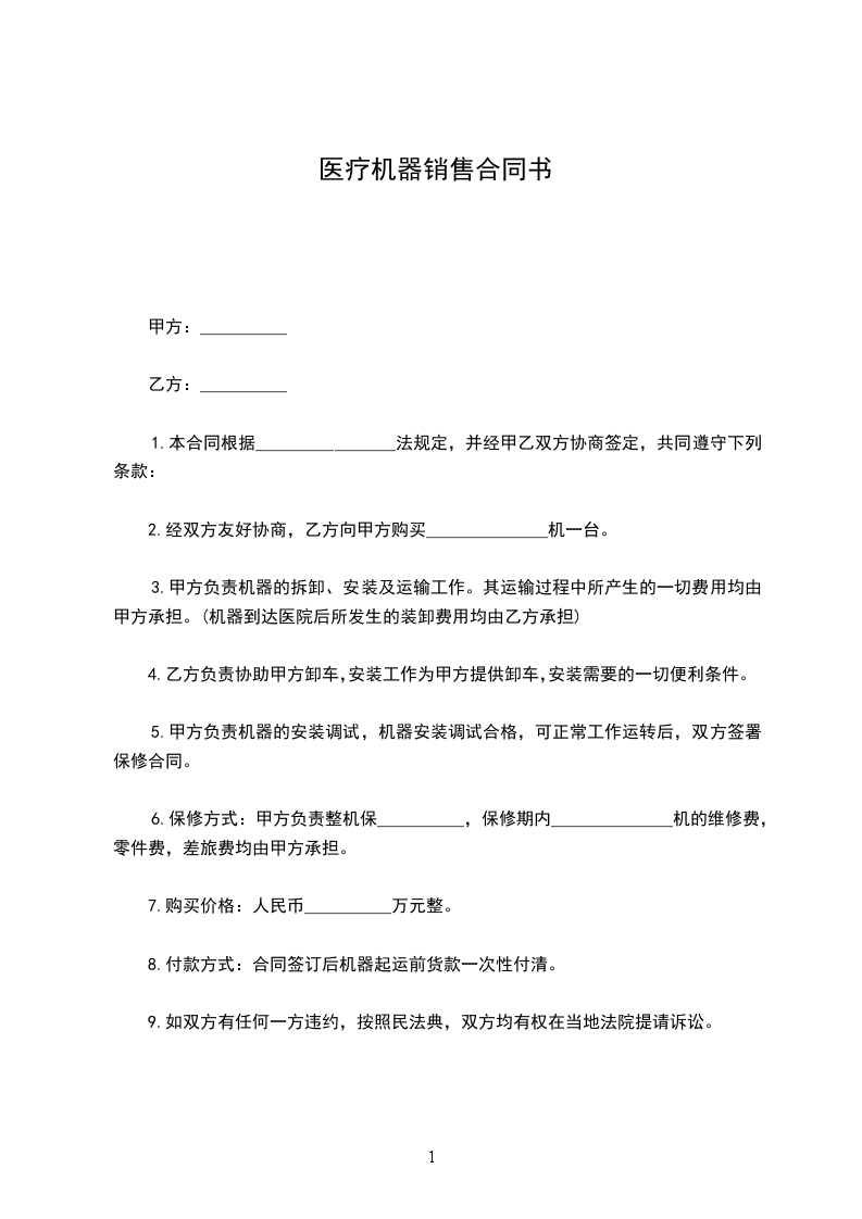 3.甲方负责机器的拆卸、安装及运输工作。其运输过程中所产生的一切费用均由甲方承担。(机器到达医院后所发生的装卸费用均由乙方承担)