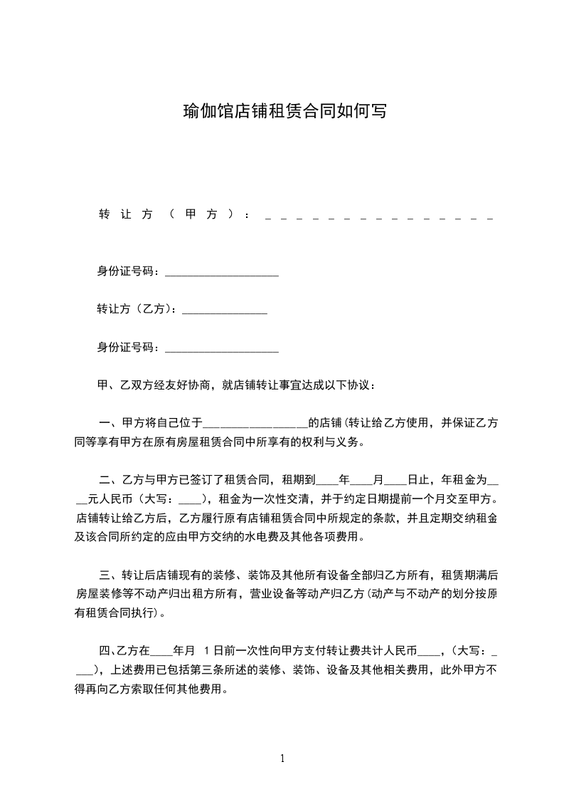 瑜伽馆店铺租赁合同如何写