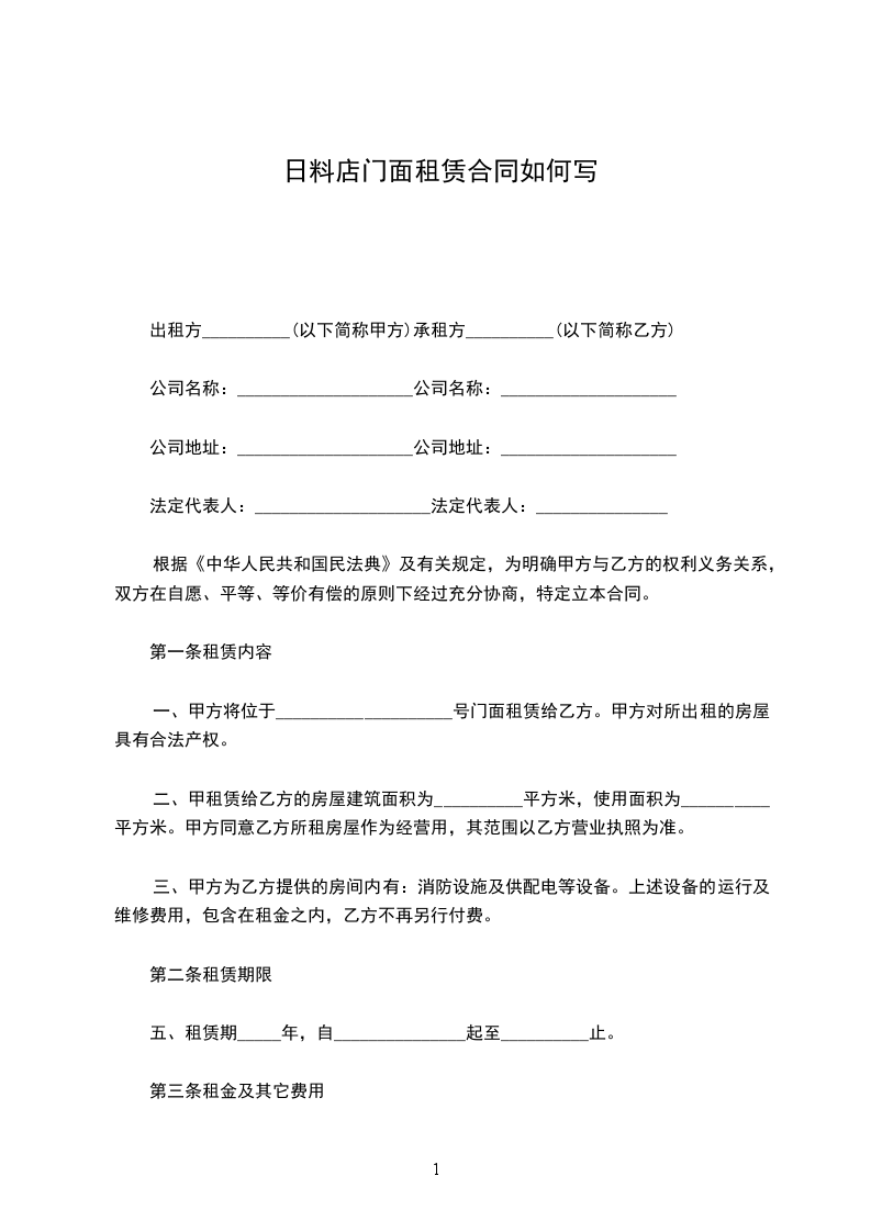 第一条租赁内容