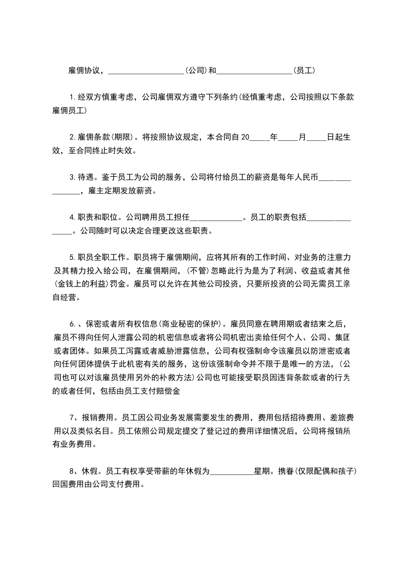 1、甲方每月11日前以货币形式支付乙方劳务报酬,标准为_______元/月。