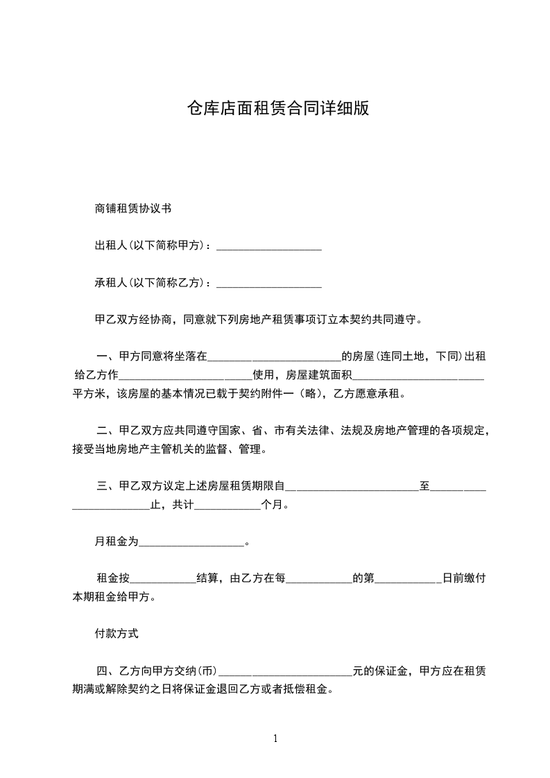 一、甲方将位于____________________号门面租赁给乙方。甲方对所出租的房屋具有合法产权。