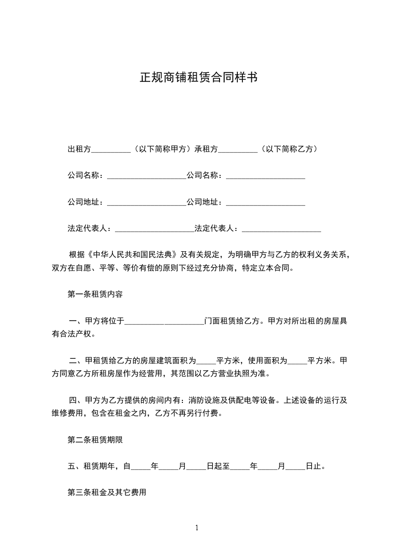 第一条租赁内容