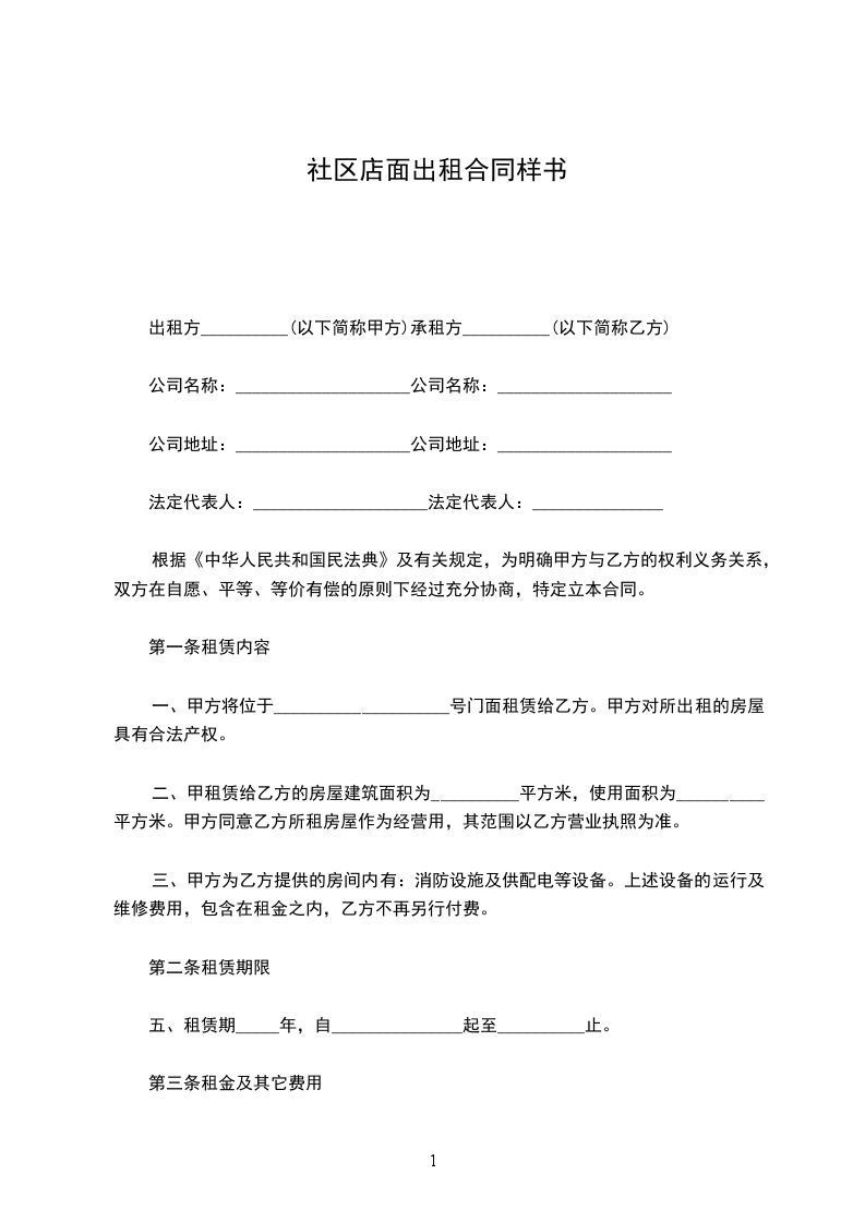 一、甲方将位于____________________号门面租赁给乙方。甲方对所出租的房屋具有合法产权。