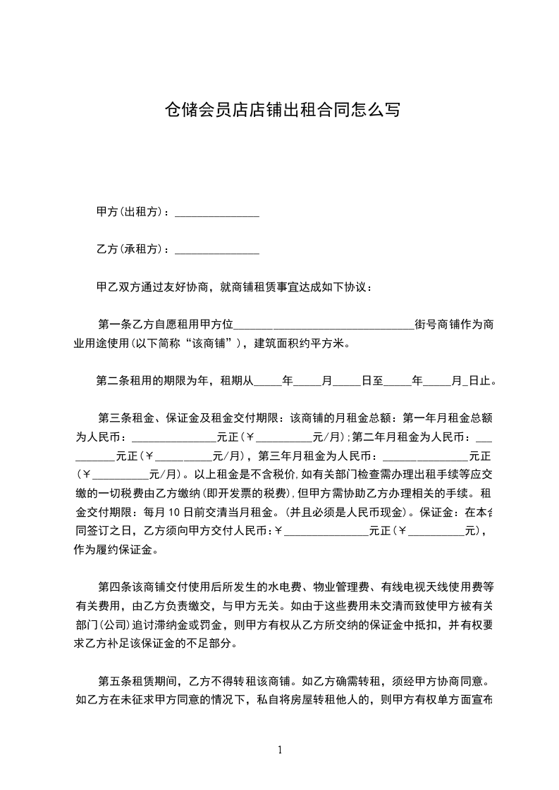 租金标准:商铺的单位租金标准为:¥_________元/平方米/月,月租金总额为:¥_________元(大写:人民币_________万_________千_________百_________拾_________元整)。