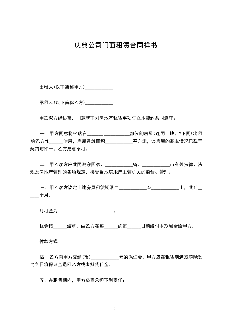 五、在租赁期内,甲方负责承担下列责任: