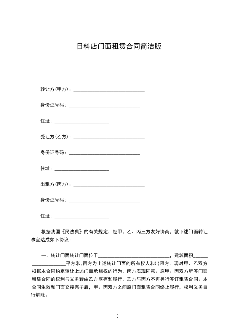 甲方出租的商铺坐落于_______________,建筑面积__________平方米。