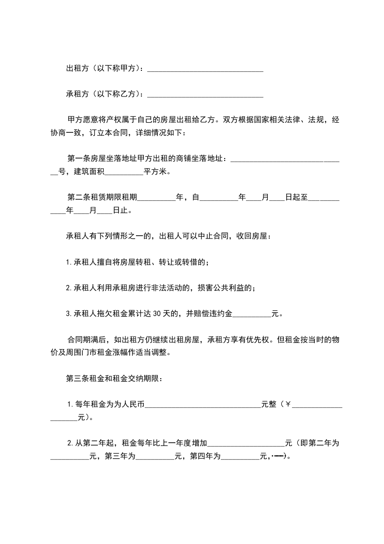 第一条租赁商铺广场(以下统称“商铺”),租赁面积约:__________________平方米(乙方同意不就租用面积与政府测绘或其他组织个人测量面积有出入而进行任何租金调整)。