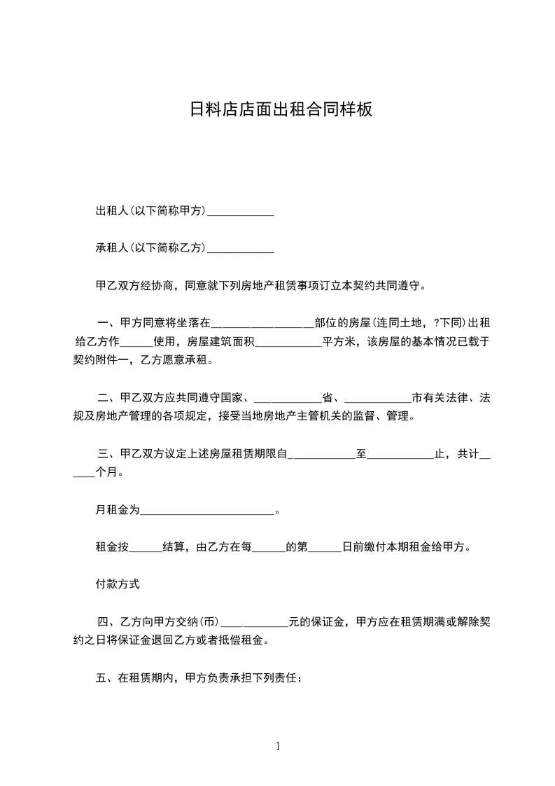 五、在租赁期内,甲方负责承担下列责任: