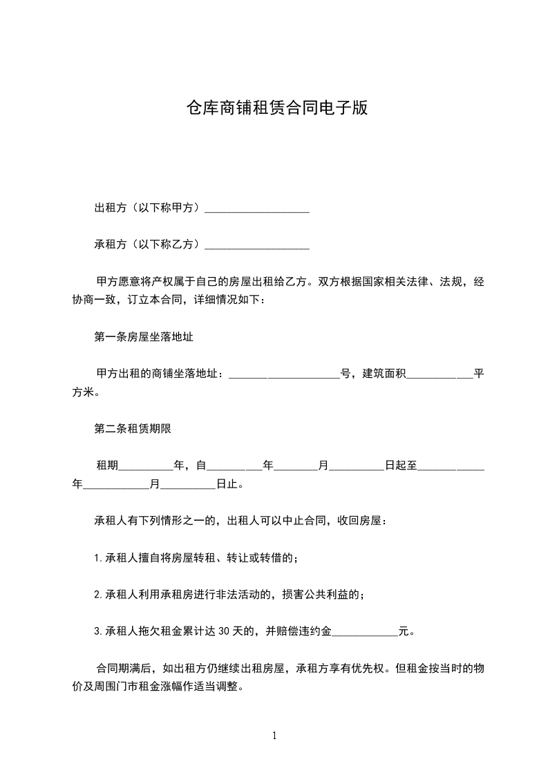 出租方__________(以下简称甲方)承租方__________(以下简称乙方)