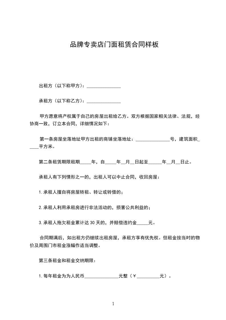 第一条房屋坐落地址甲方出租的商铺坐落地址:_______________号,建筑面积_____平方米。