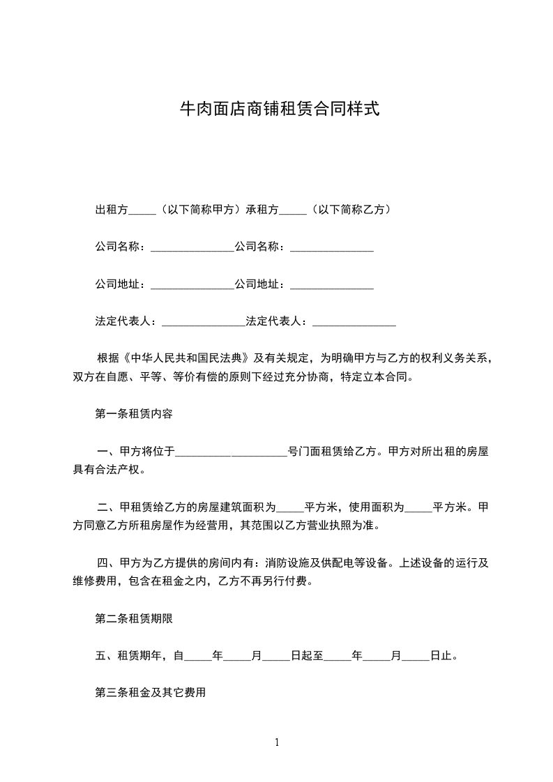 第一条租赁内容