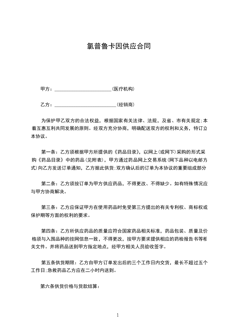 普鲁卡因买卖合同范本