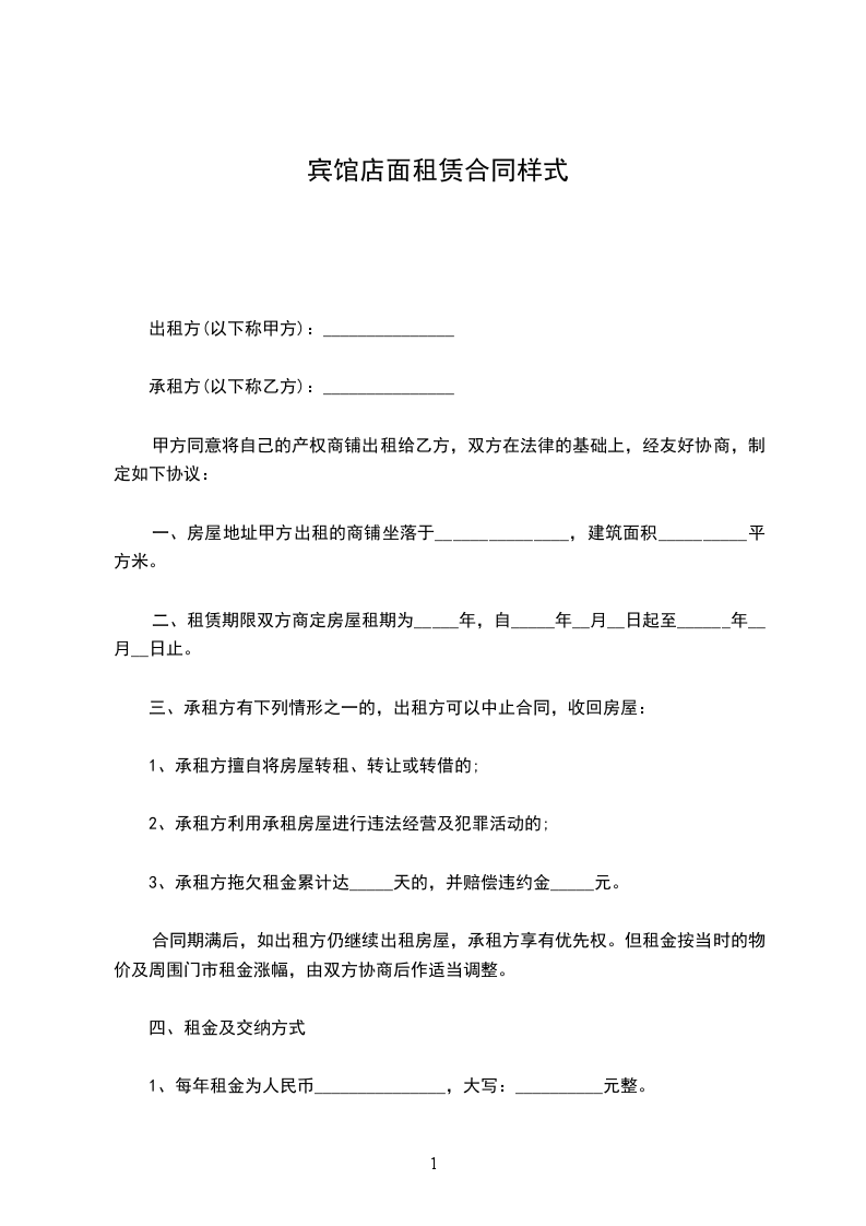 1、每年租金为人民币_______________,大写:__________元整。