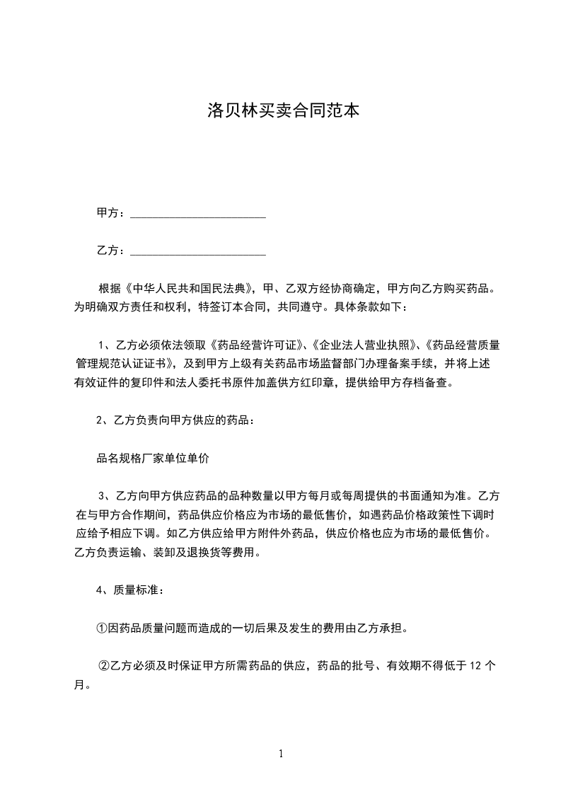根据《中华人民共和国民法典》,甲、乙双方经协商确定,甲方向乙方购买药品。为明确双方责任和权利,特签订本合同,共同遵守。具体条款如下: