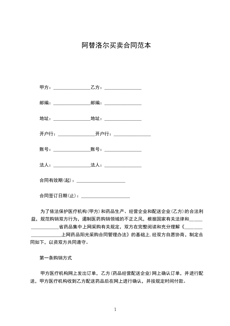为了依法保护医疗机构(甲方)和药品生产、经营企业和配送企业(乙方)的合法利益,规范购销双方行为,遏制医药购销领域的不正之风,根据国家有关法律和__________________省药品集中上网采购有关规定,双方在完整阅读和充分理解《_____________________上网药品阳光采购合同管理办法》的基础上,经双方自愿协商,制定合同如下,以资双方共同遵守。