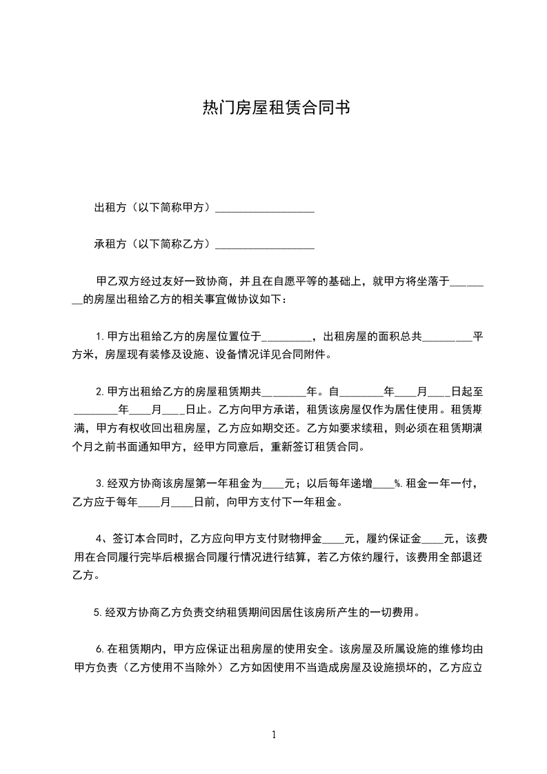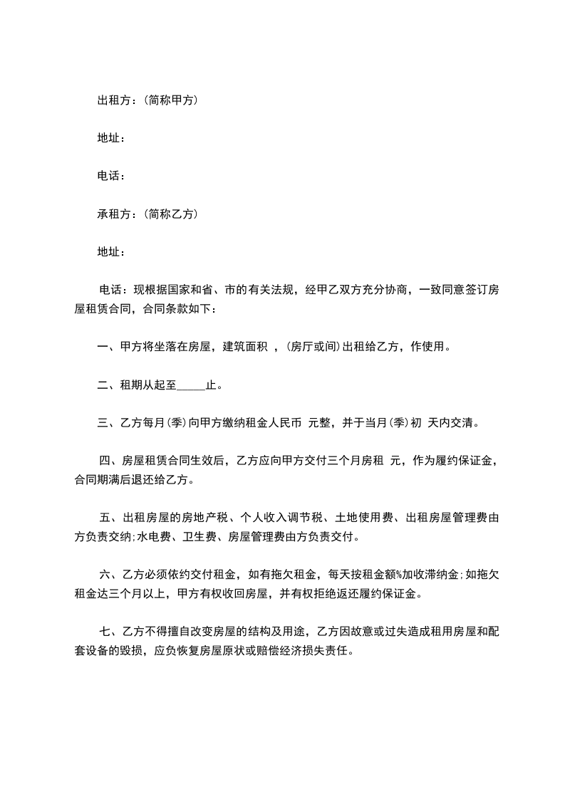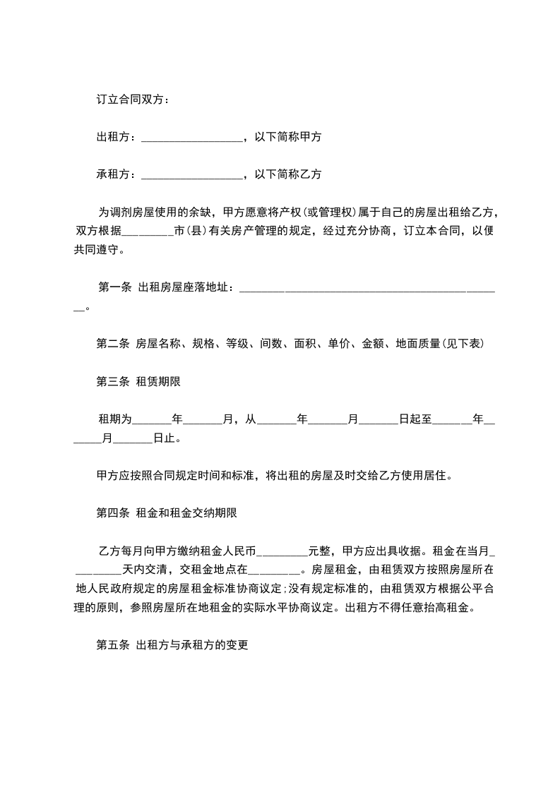 第一条 出租房屋座落地址:_______________________________________________。