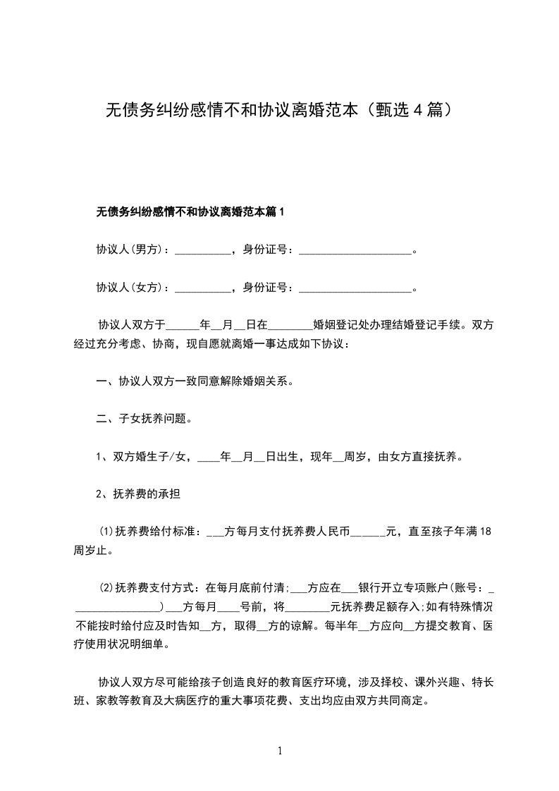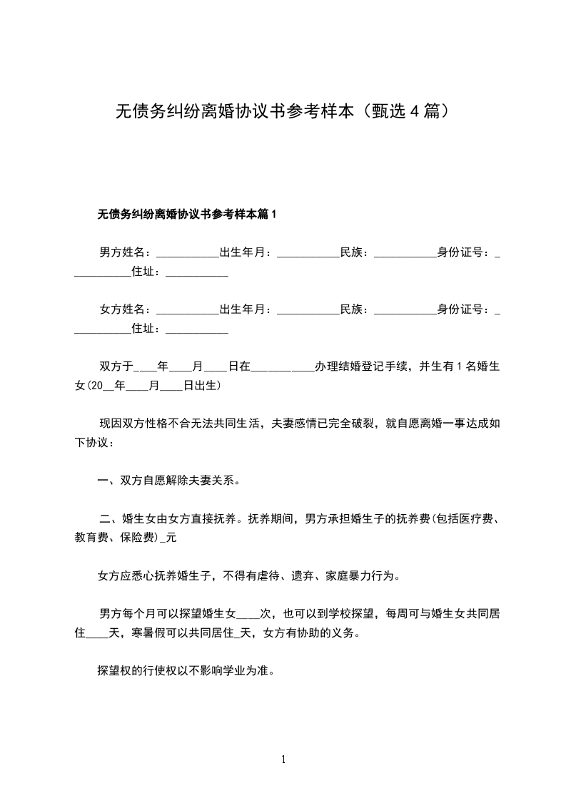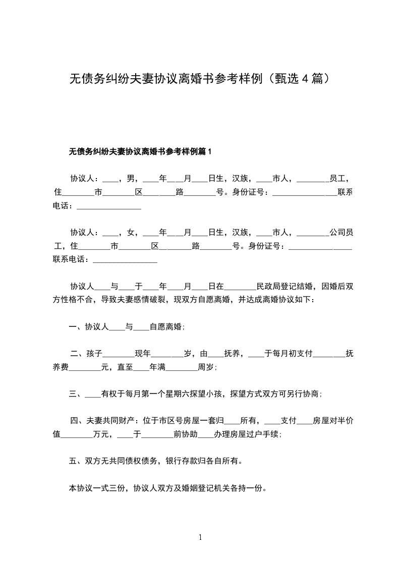 无债务纠纷离婚协议书参考样本篇4