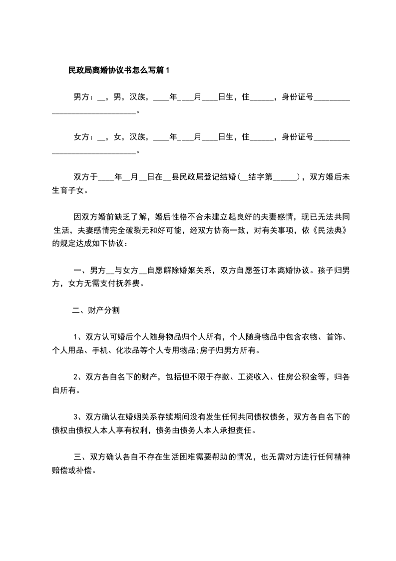 民政局离婚协议书怎么写篇3