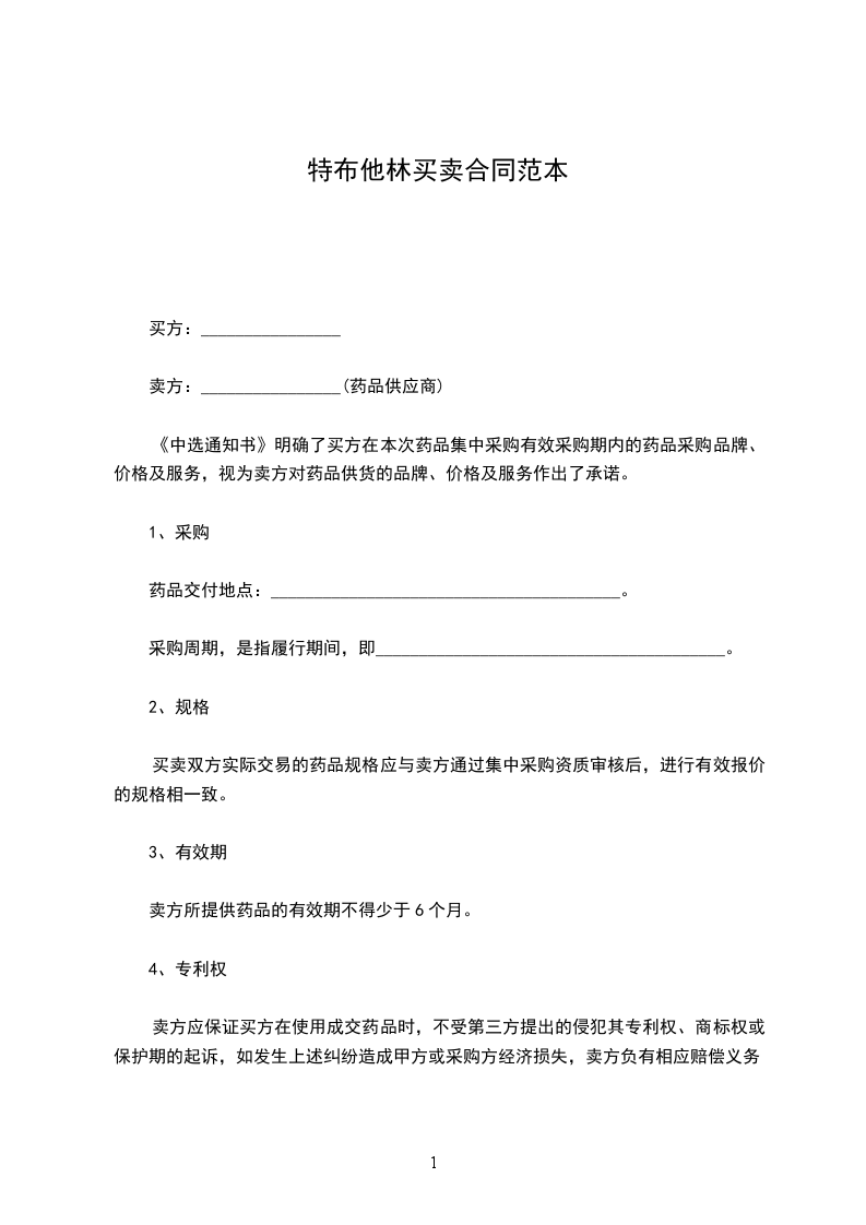 15.1买方须采购本合同项下的中选品种且完成约定的采购量。卖方无违约行为,买方不得以任何理由采购非中选品种,不得采购其他替代品种。