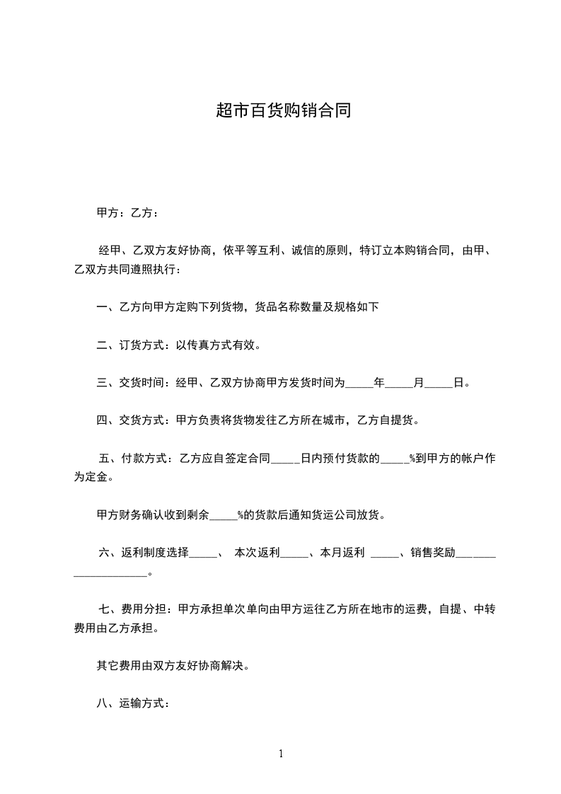 具体商品购销分合同,一般以一货一单格式(见附件1、2),有特殊要求的可用自制格式。
