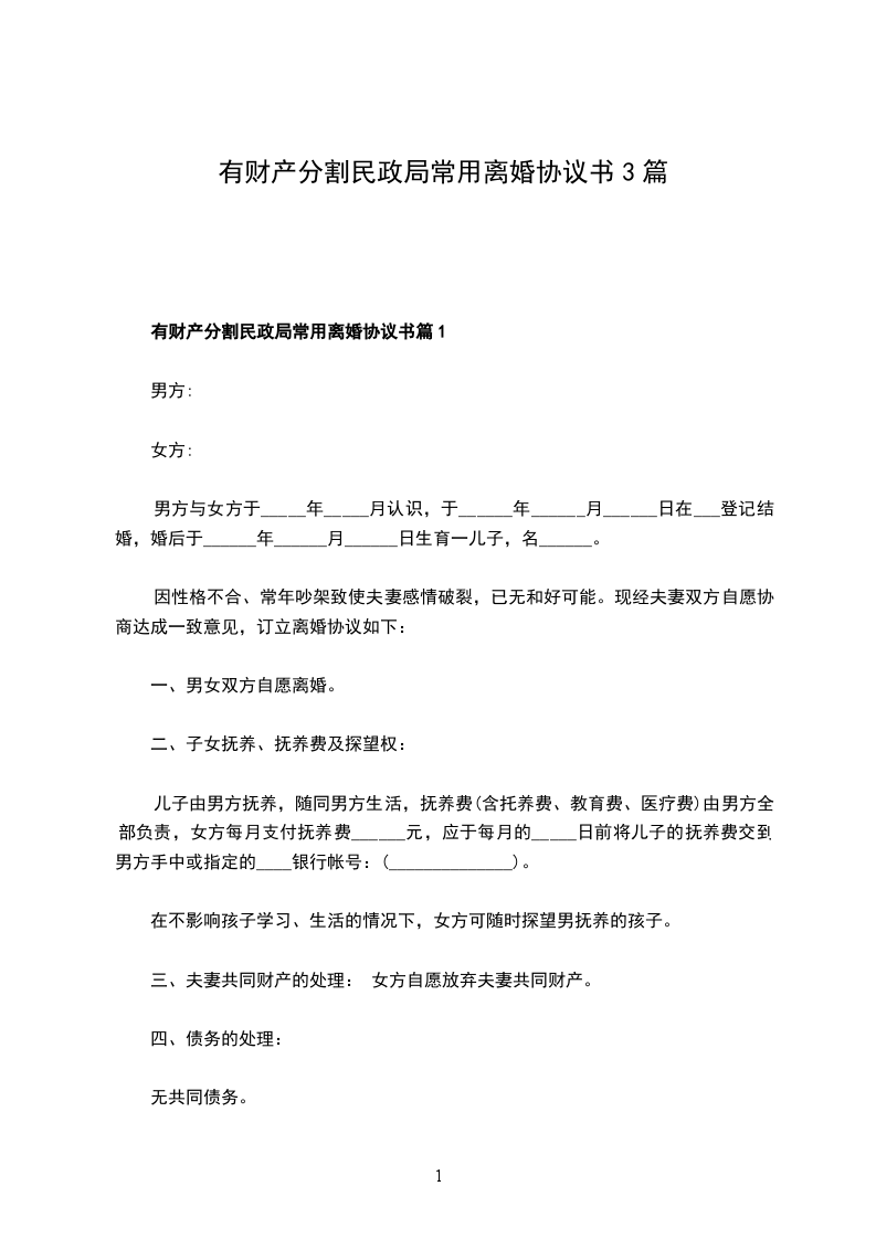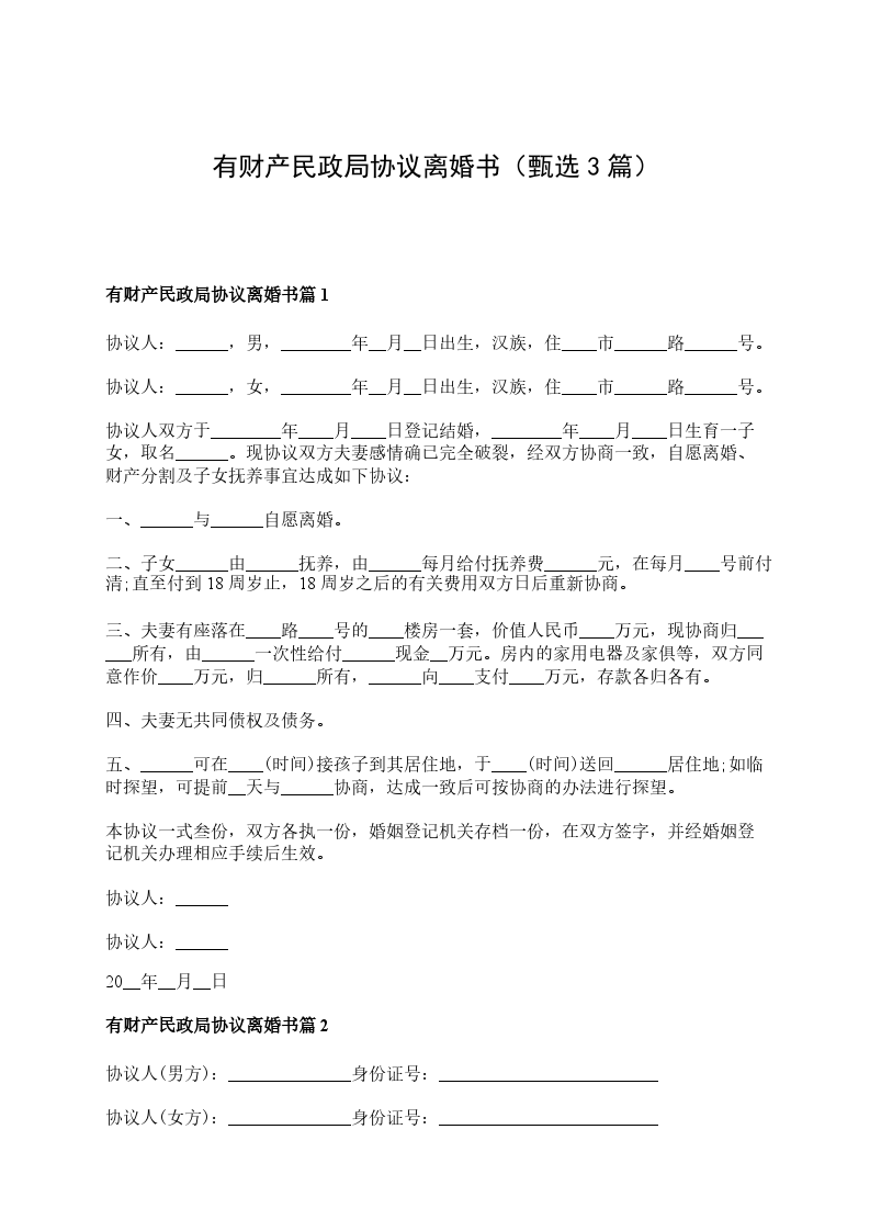 有财产民政局离婚协议篇3