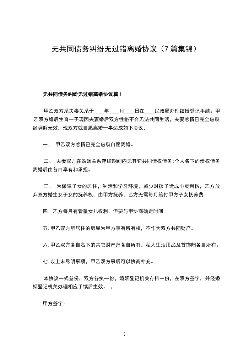 无共同债务纠纷无过错离婚协议篇7