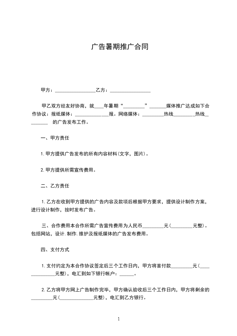 甲乙双方经友好协商,就____年暑期“_________”_______媒体推广达成如下合作协议: