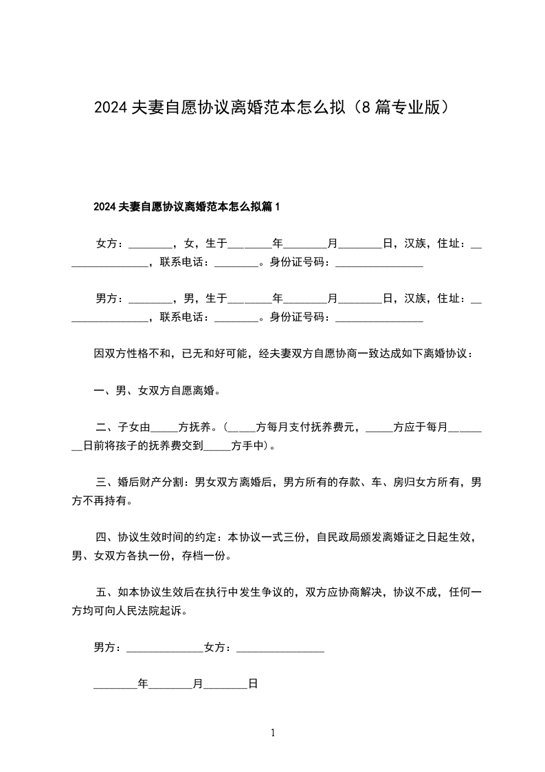 男女双方于____年__月__日在__________婚姻登记部门办理结婚登记手续,结婚证号码__________,婚后于____年__月__日生育一个儿子(女儿),名______。因双方性格不合无法共同生活,夫妻感情已经完全破裂,没有和好可能,经双方就自愿离婚事宜达成一致意见,订立离婚协议如下: