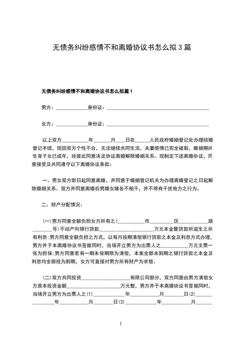 无债务纠纷感情不和离婚协议书怎么拟篇1