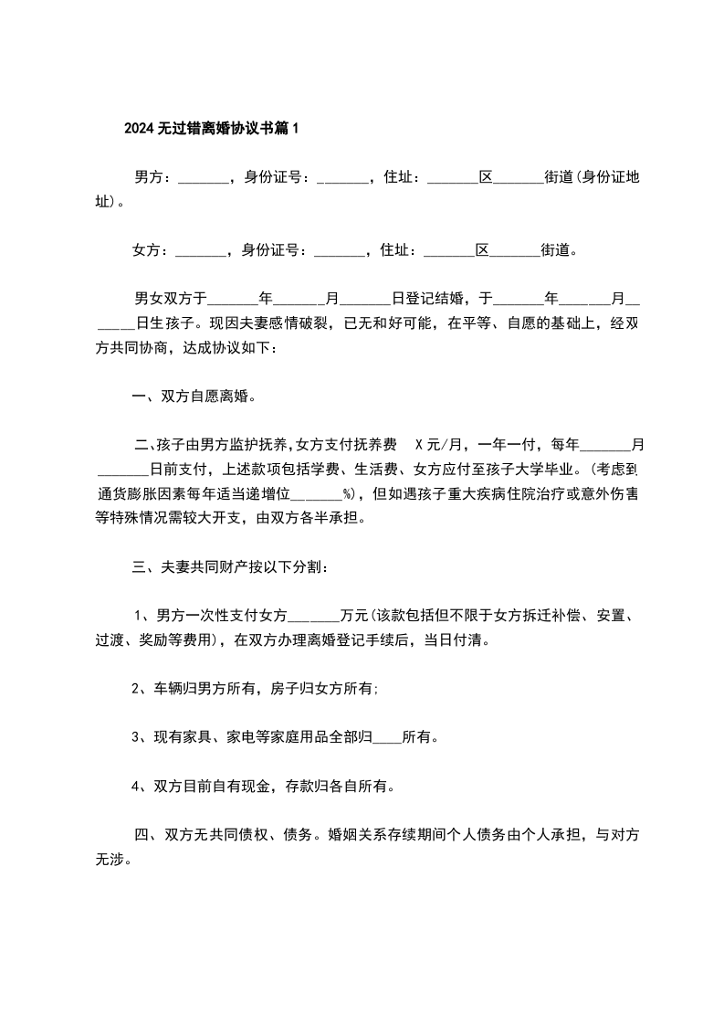 无共同债务无过错离婚协议篇6
