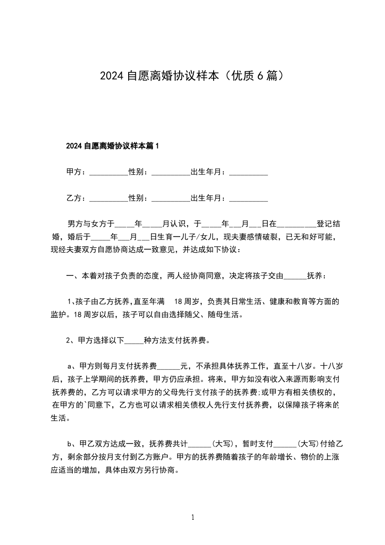 最新自愿离婚协议模板篇1