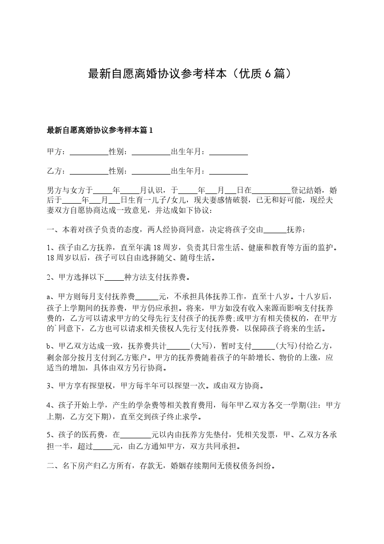 最新自愿离婚协议模板篇6