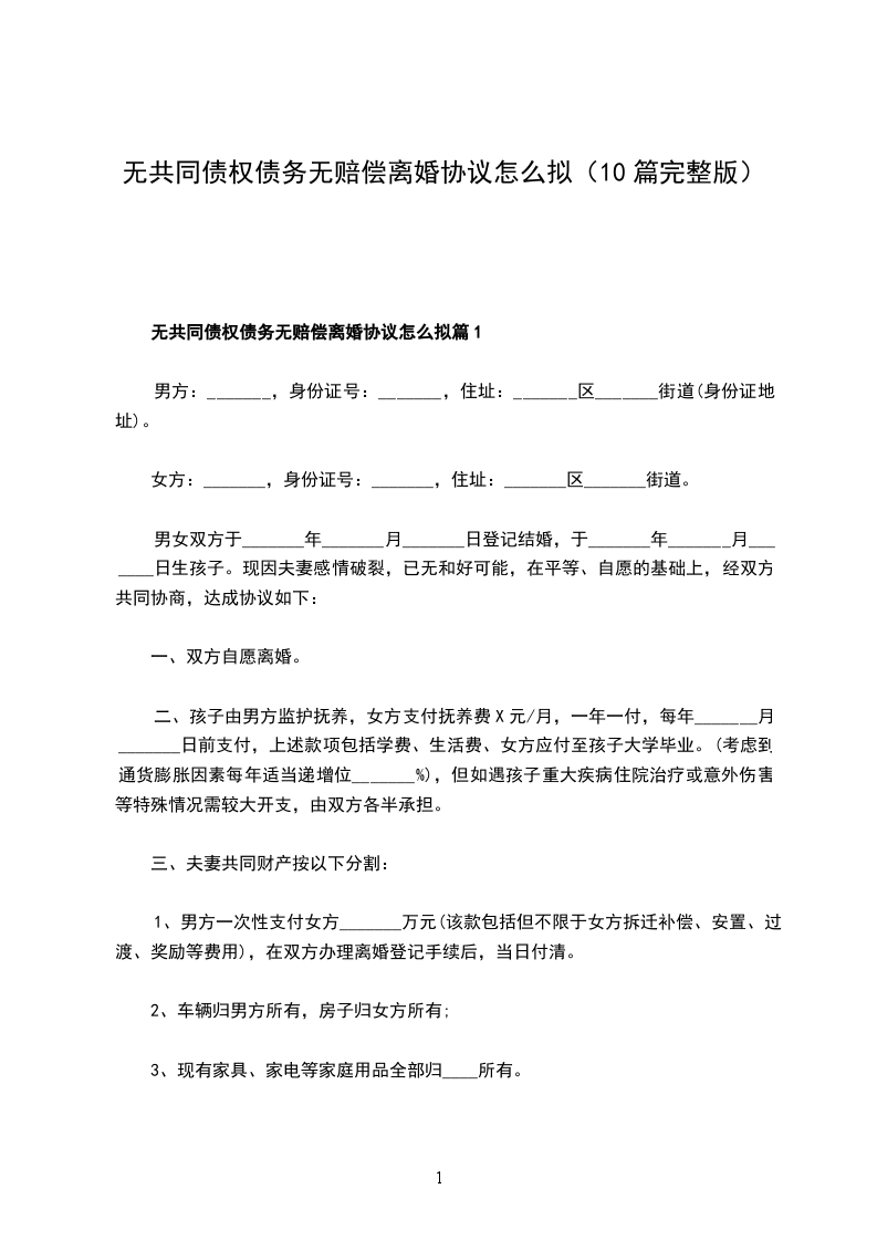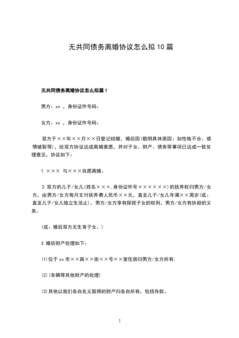 1、甲乙双方确认在婚姻关系存续期间无共同债务;