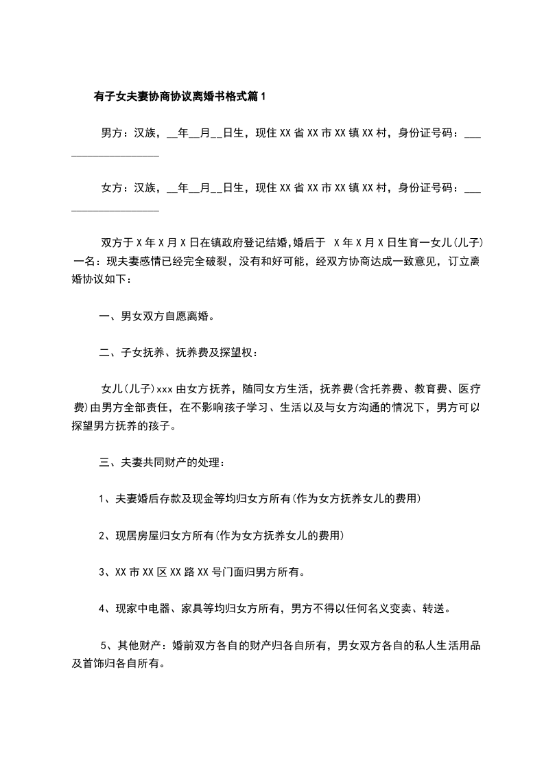 1、双方于___年___月___日生育一女儿,取名:____,于____年____月____日生育一儿子,取名:____.离婚后儿子及女儿随男方直接抚养生活。