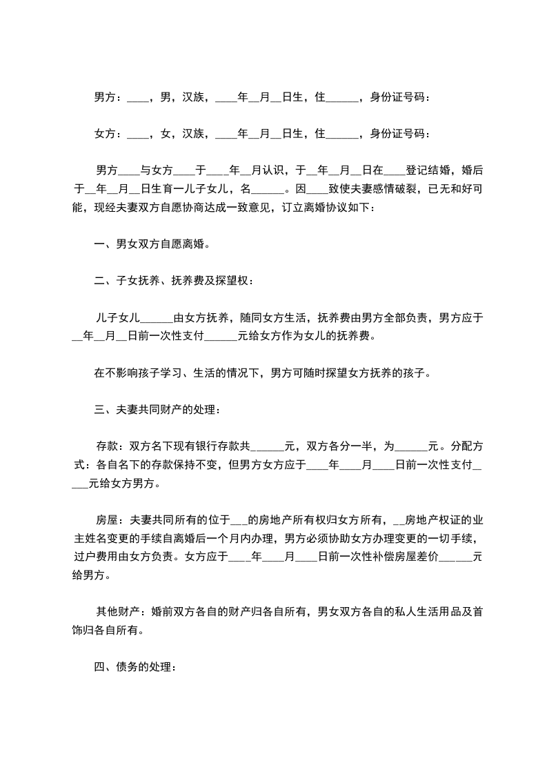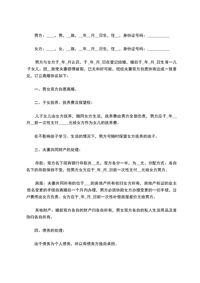 一、男方____与女方____自愿离婚。