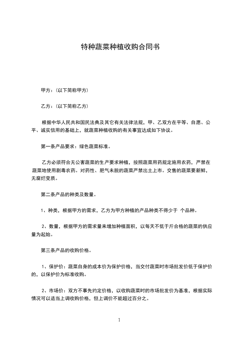 根据中华人民共和国民法典及其它有关法律法规,甲、乙双方在平等、自愿、公平、诚实信用的基础上,就蔬菜种植收购的有关事宜达成如下协议。