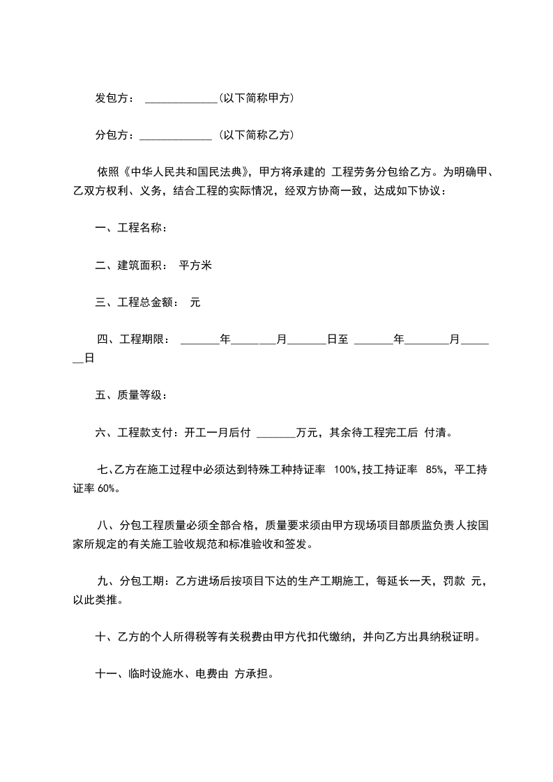 1.4承包方式:包工、包料、包质量、包管理、包安全等总方式。