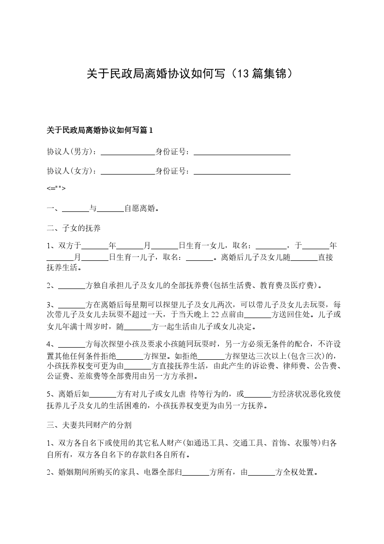 关于民政局协议离婚范本篇13