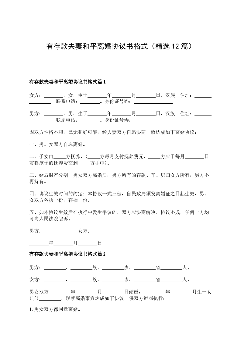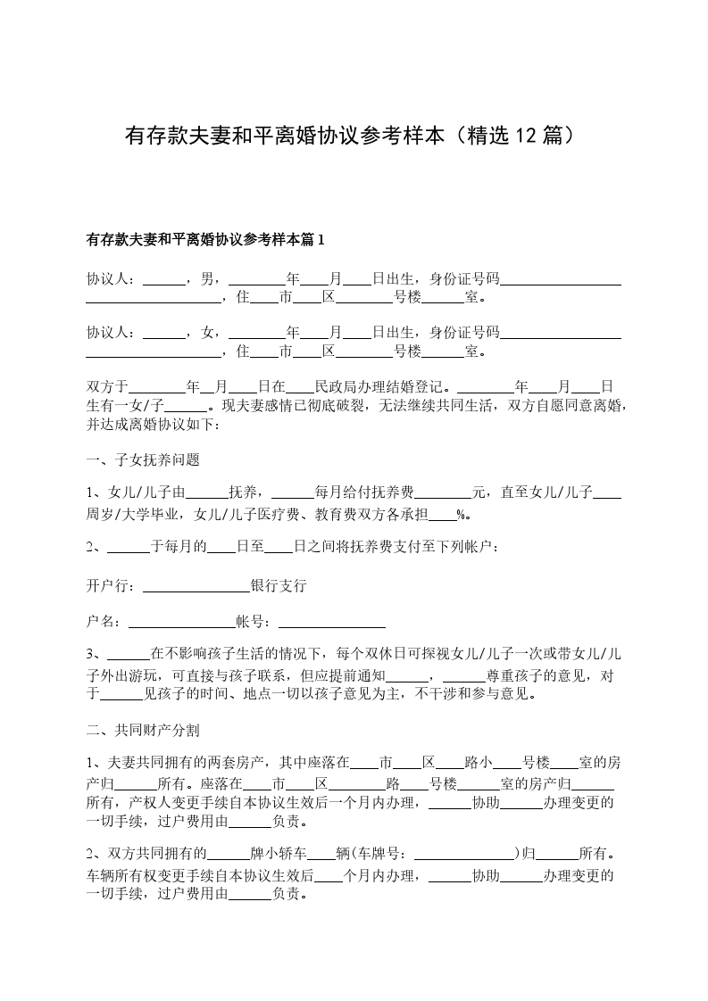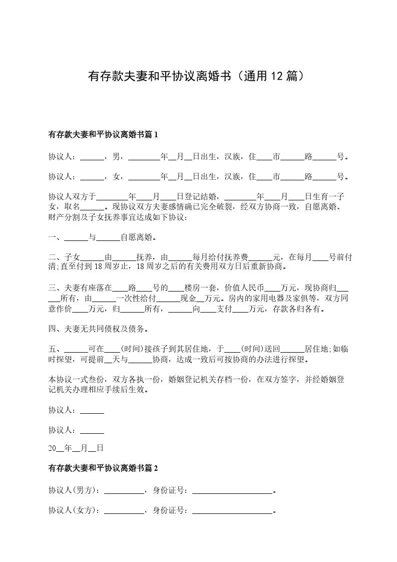 有存款夫妻和平协议离婚书篇12