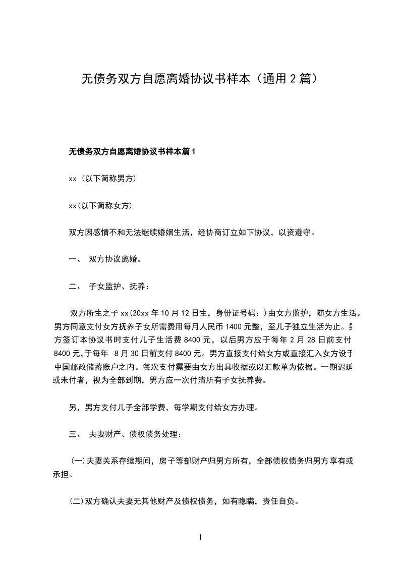 全新双方自愿协议离婚范本样本篇1