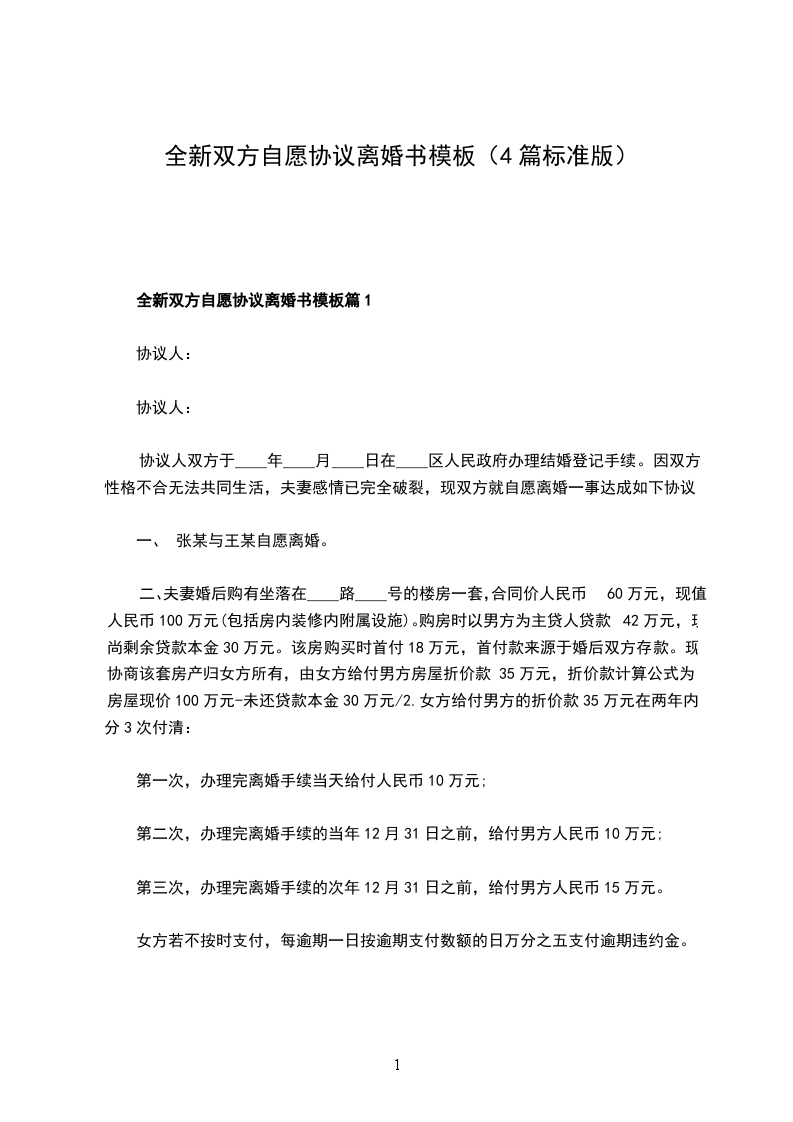 男方与女方于_________年_________月_________日在_________登记结婚。男女双方夫妻感情确已破裂,已无和好可能,双方自愿离婚。经男女双方自愿协商,达成协议如下: